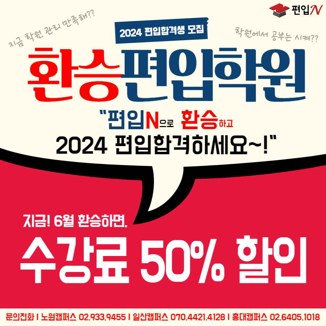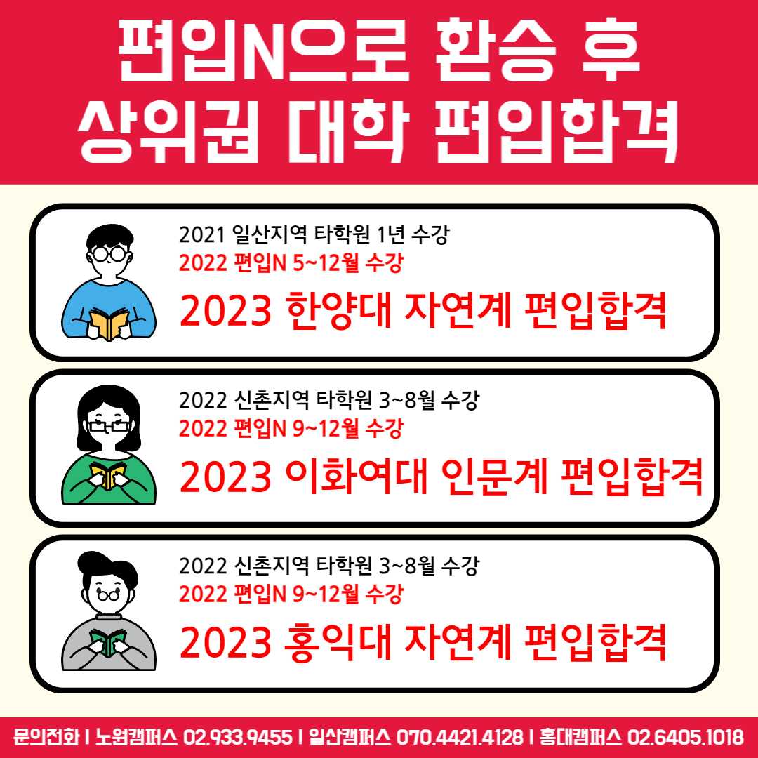 | 신촌편입학원 편입N 3월 과정과 강사진, 소수정예 시스템 소개 (0) | 2023.02.20 |
